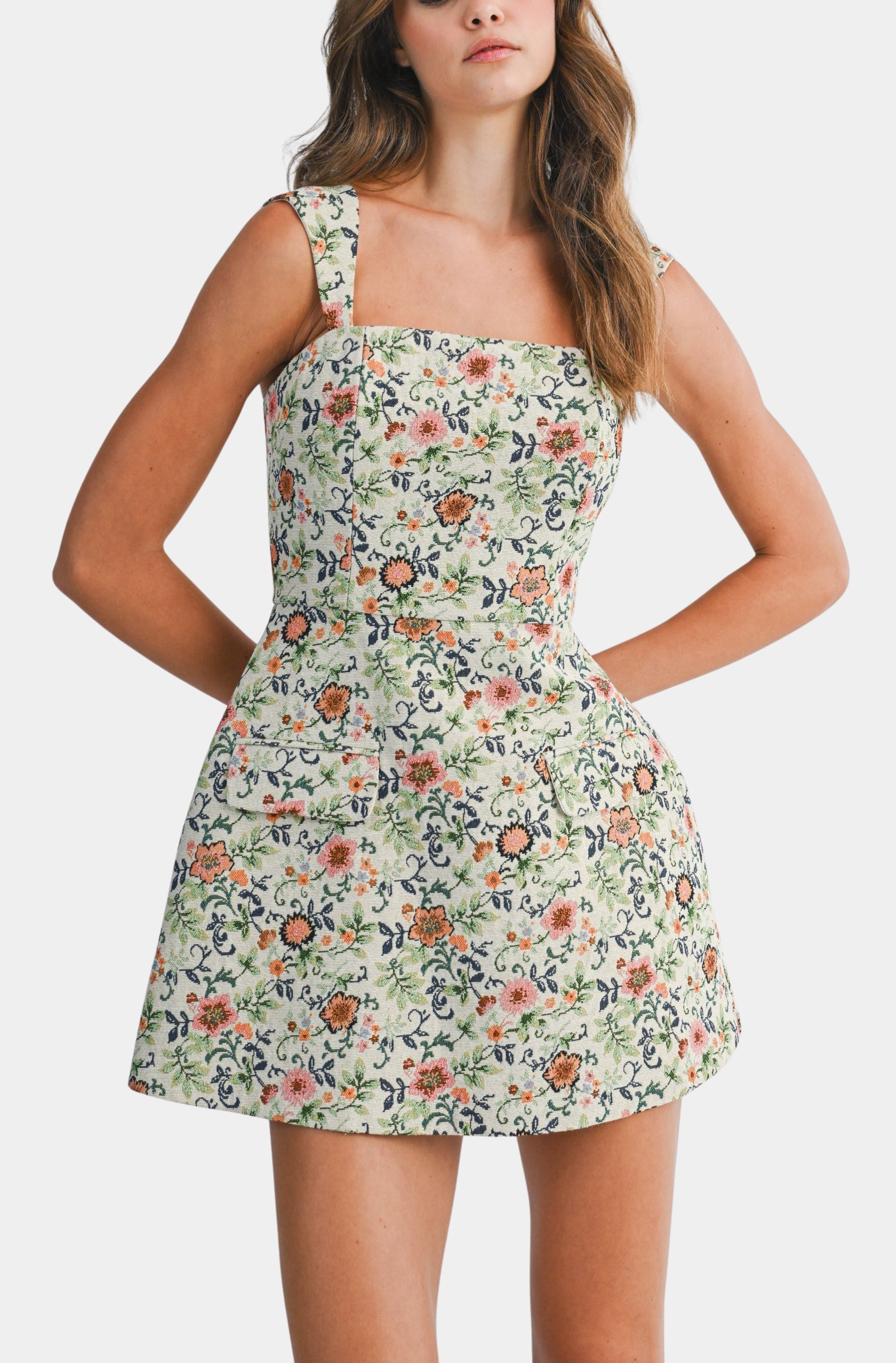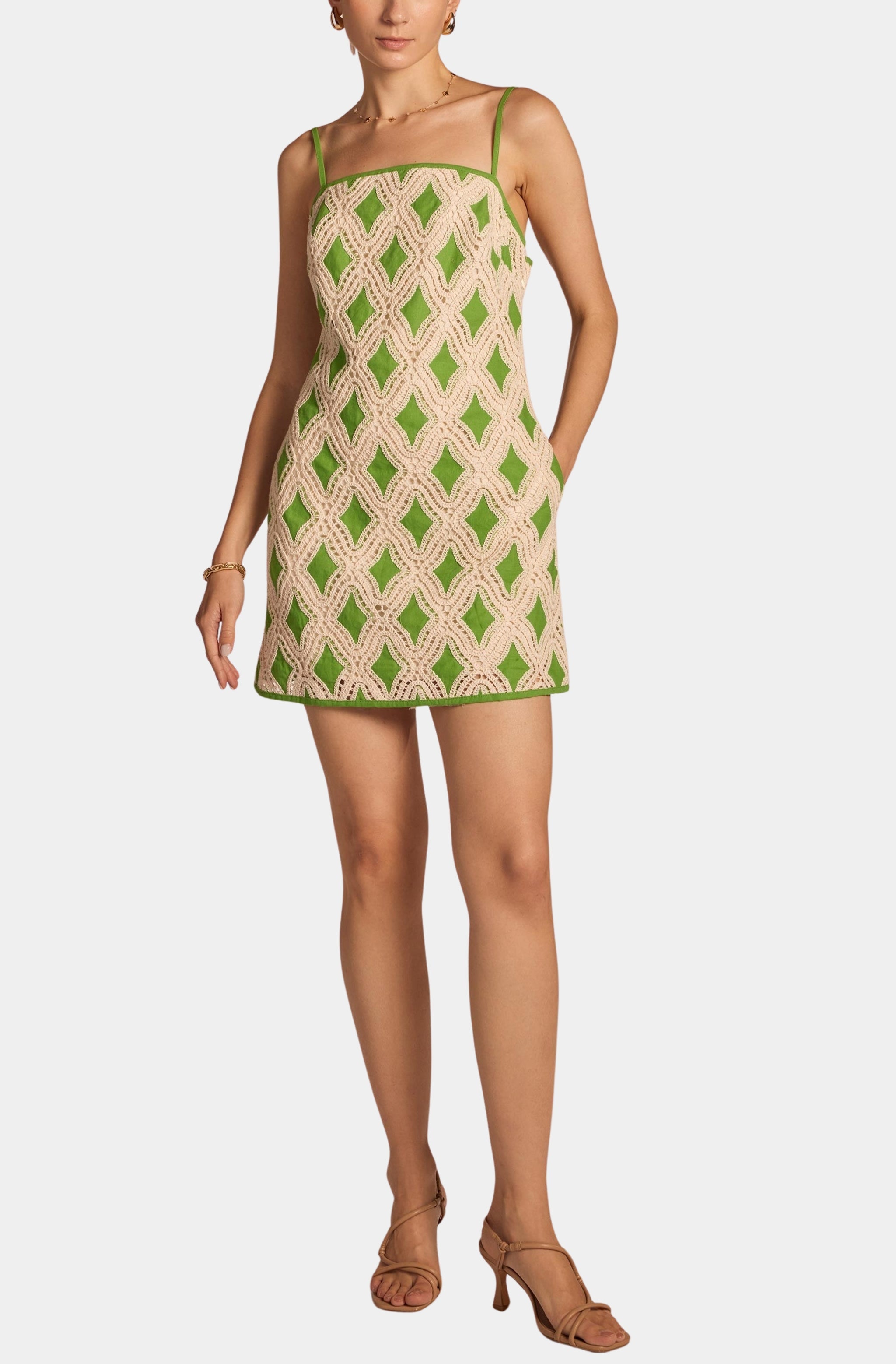 Embroidered Strap Mini Dress