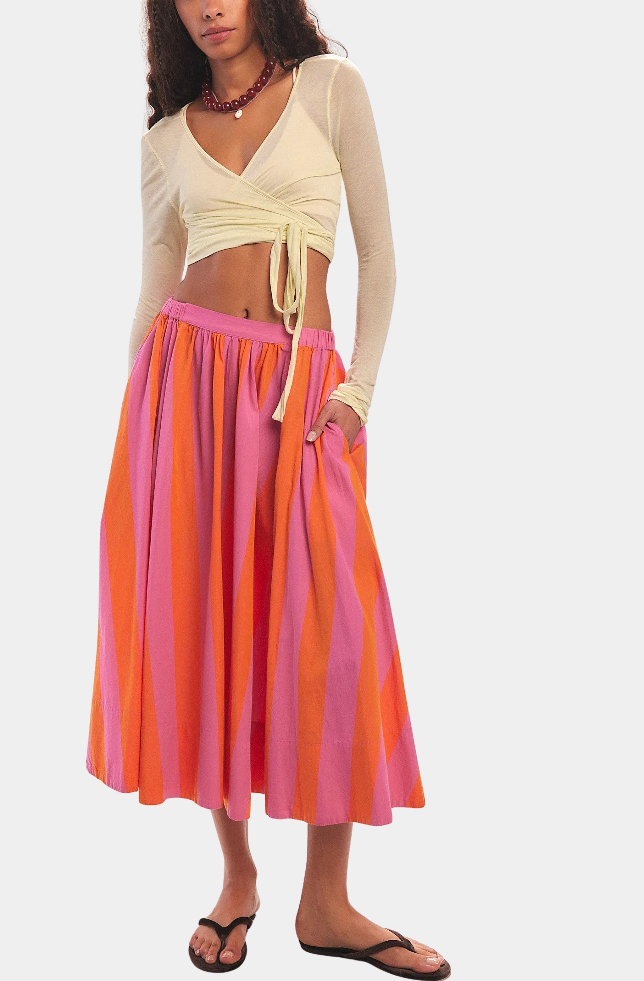 Free People Lowen Striped Midi Skirt